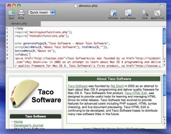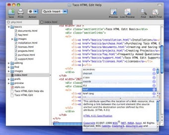 O Taco HTML permite que você crie páginas de forma fácil e divertida. Tem suporte para mapas de imagens e pré-visualização com os navegadores Internet Explorer, Netscape, OmniWeb e Opera. Barra de ferramentas